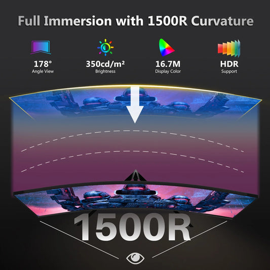 Professional 1800R Curved Gaming Monitor - 165Hz/180Hz VA Screen for Home, Office, and Dormitory Use