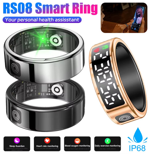 RS08 Smart Ring - IP68 Waterproof Health and Fitness Tracker for Men and Women with Heart Rate, Blood Oxygen, and Sleep Monitoring for iPhone iOS