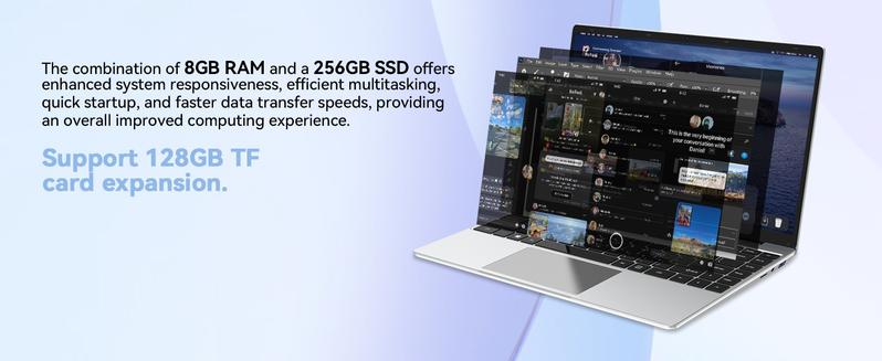 🏡 Ample Storage: Laptop Computer 8GB LPDDR4 RAM and a 256GB SSD (expandable up to 1TB with M.2 2242/2280 SSD) provide rapid performance, surpassing traditional hard drives.