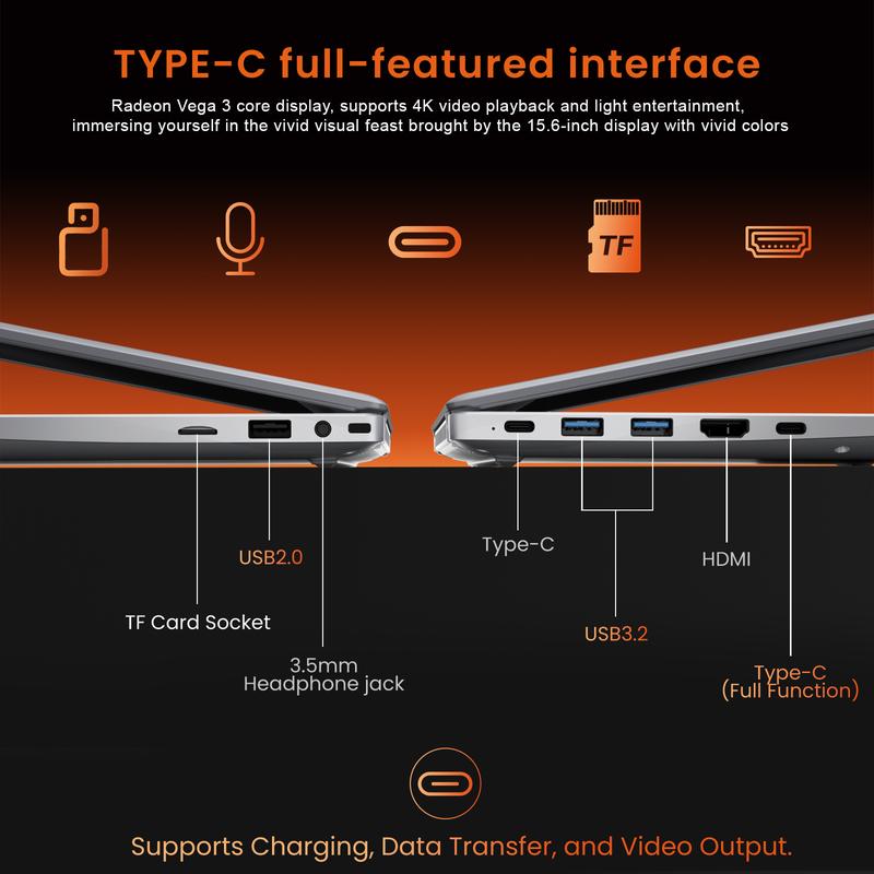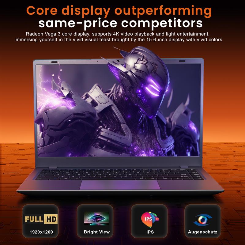 15.6 Inch Business Laptop Notebook PC CPU AMD 3020E 8GB RAM 256GB SSD Storage Fingerprint Recognition Backlit Keyboard & Mini Hdmi Computer