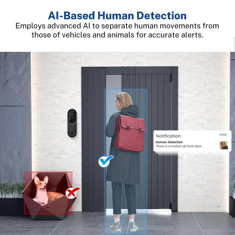 【Easy Installation】: The 2.4ghz WIFI video doorbell camera is designed for easy setup, allowing you to install it quickly and start using it without various hassle.