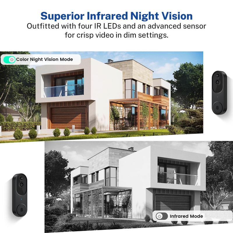 【Night Vision Feature】: See who's at your door at night with the doorbell camera's night vision capability, providing clear visibility in low-light conditions.