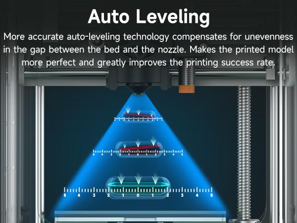 - HUMANIZED DESIGN: In order to make it more convenient for different users to use the 3D printer, the printer adopts an auto leveling function, and the design of the dual Z-axis makes the printer run to replace the stable and reduce the error when leveling the bed, and improve the success rate of the printed model.