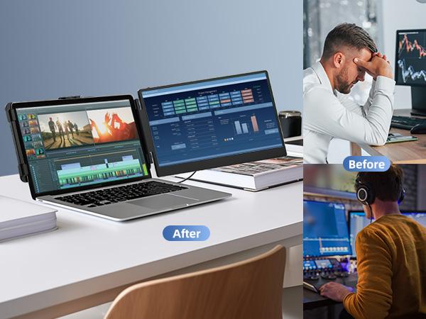 Portable for On-the-Go Productivity Designed for mobility, this monitor expands your workspace by up to 200%, ideal for multitasking—open multiple windows for work, video calls, gaming, or streaming. Perfect for remote workers, gamers, programmers, and anyone needing extra screen space on the move.