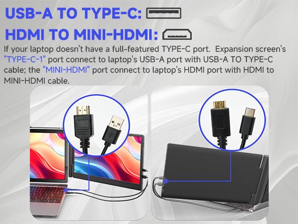 Plug-and-Play Setup with Wide Compatibility This 14-inch portable monitor offers easy setup via 1 full-featured USB-C or HDMI port (supports video output).-C or HDMI port (supports video output). Includes USB-C to USB-C, USB-A to USB-C, and HDMI to USB-C cables. Note: For HDMI, connect the USB-A to USB-C cable for power. Works with Windows, Mac, Linux, laptops, tablets, and gaming consoles.