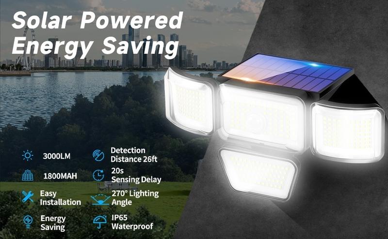 - Multiple Use: With 3000LM output and 278 LED lights, the Solar Security Lights provide a powerful and efficient lighting solution for your outdoor spaces. They are perfect for illuminating your yard, garden, garage, porch, and other areas around your home.