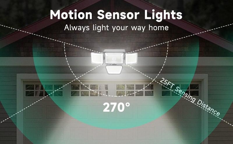 - Wide Angle Design: Our solar security light fixture with 4 adjustable heads design, Up to 270°wide lighting angle and 39 feet sensing distance, ensuring that every corner of your outdoor space is illuminated and provides better coverage and visibility.