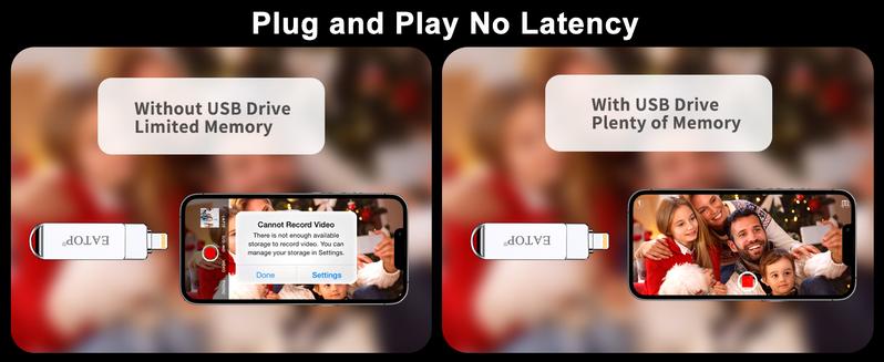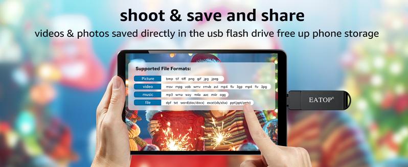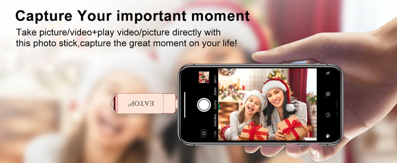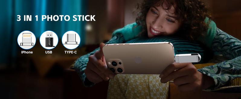 EATOP USB Flash Drive Intended for Iphone Ipad, Memory Stick Storage for Photos and Videos Backup, Compatible with Iphone Ipad Android PC, Plug and Play, No Application Required
