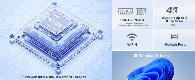- 【NEW GENERATION CPU-N100】 Mini PC is powered by a faster Intel 12th generation Alder Lake N100 Quad-Core processor (Up to 3.4GHz). Deliver lightning fast speeds and exceptional power for all your computing needs. With this advanced technology, our micro pc computer offers the ultimate computer experience. More powerful performance and smoother running.
