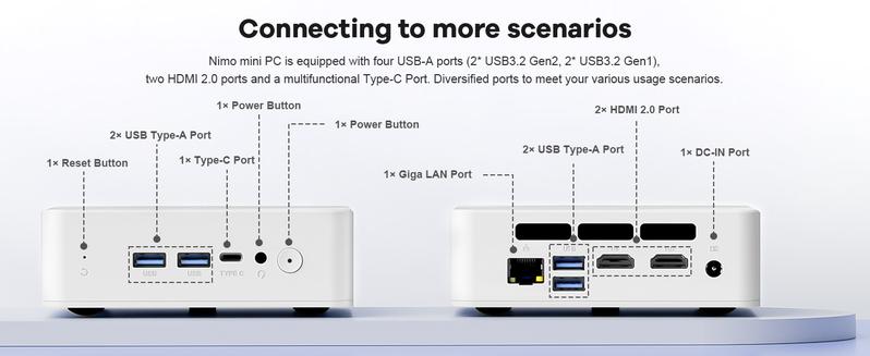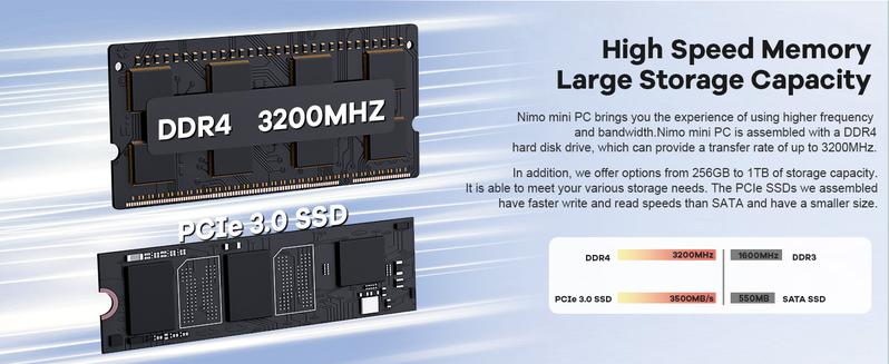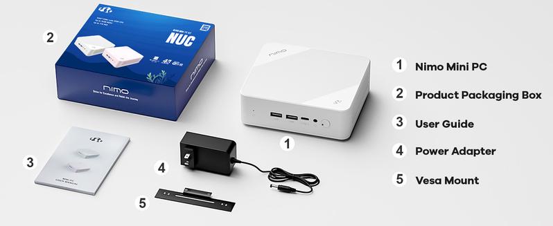 Nimo Mini PC Windows 11 Pro Intel 12Th Alder Lake N100 Quad-Core Processor (Up to 3.4Ghz) 8GB/16GB DDR4 128GB/256GB/512GB/1TB SSD 4K HD/USB 3.2/Wifi 6/BT 5.2/VESA/MINI PC for Home and School