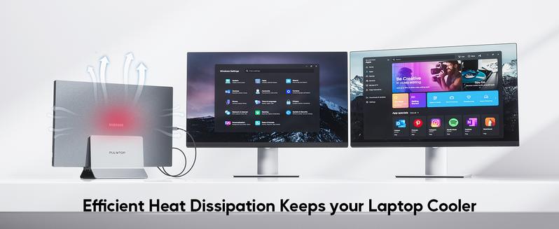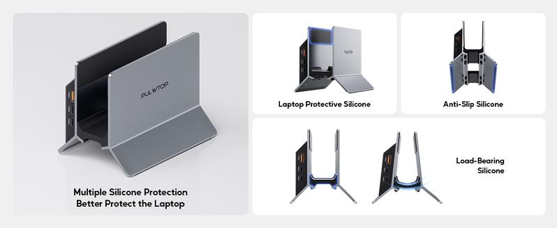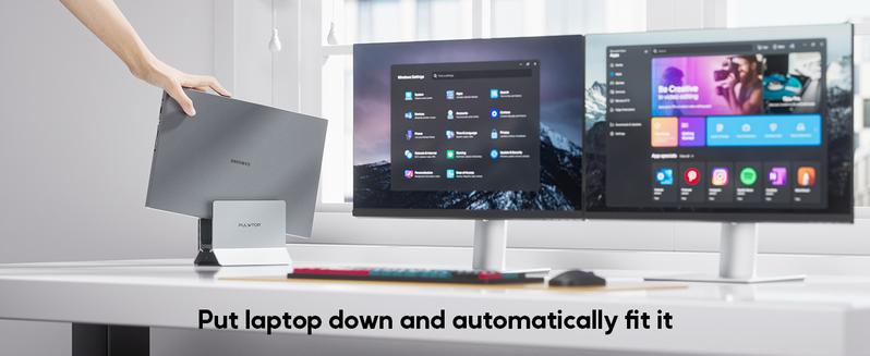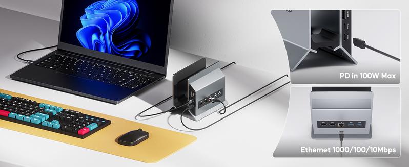 - VERTICAL DOCKING STATION STAND TO OPTIMIZE YOUR DESK - Both a laptop stand and a USB-C laptop docking. Vertical dock design can hold your laptop upright, which improves air circulation and good heat dissipation to prevent overheating and extend the service life of your laptop, as well as space-saving. Easy to setup, no tools needed, automatically lock to hold the laptop. Can hold devices with thickness up to 1.6 inches, suitable for holding most laptops, and laptops even with cases. NOTE: DO NOT compatible with Mac Mini M4/M4 Pro 2024