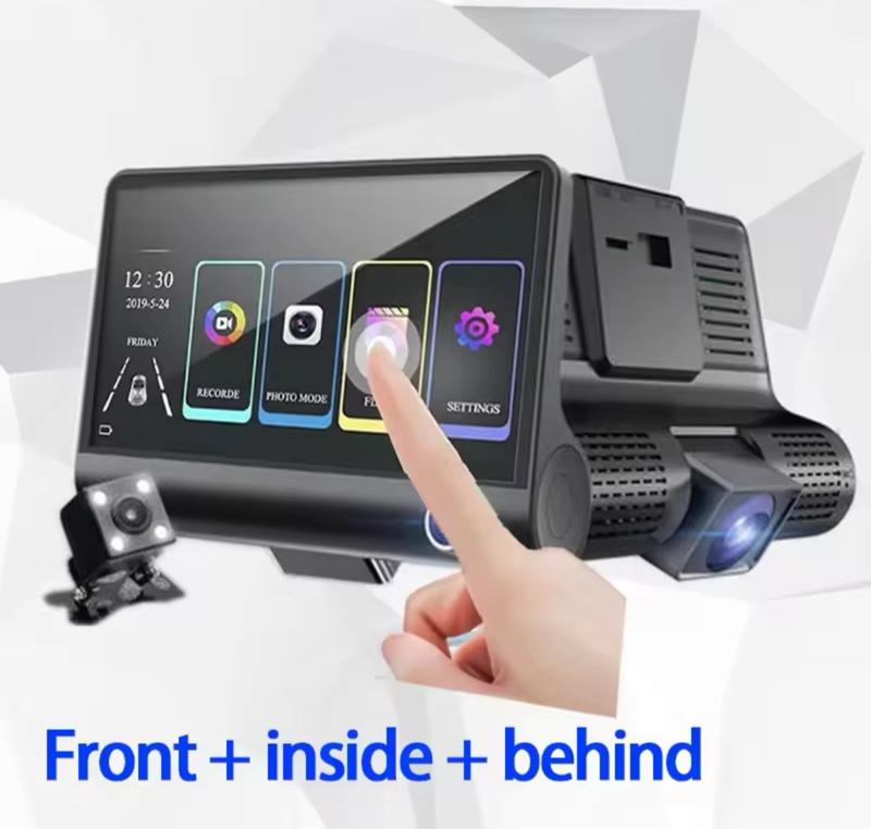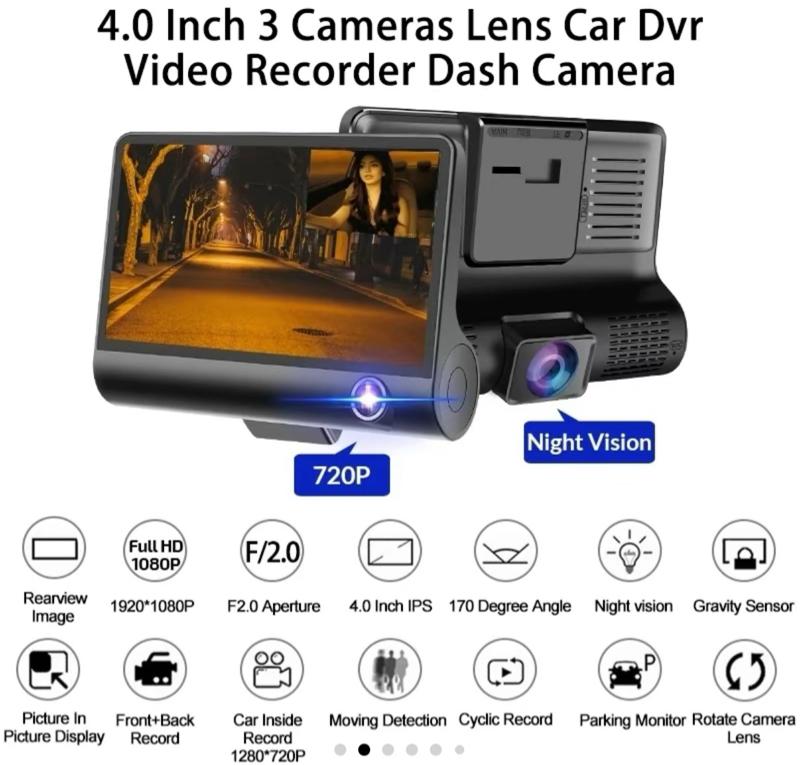 Three Lens Dash Camera Full HD with 32 GB SD Card - Front inside & behind Recording System