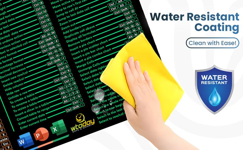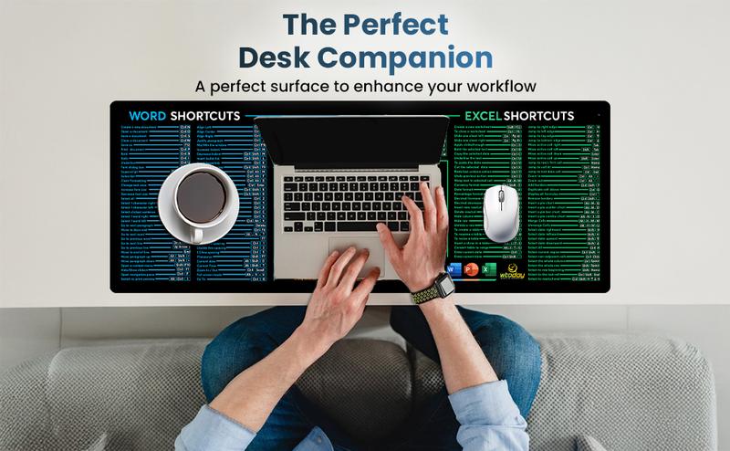 Word/Ppt/Excel Shortcuts Mouse Pad - Extended XL Office Keyboard Mat, Stitched Edges | Non-Slip Base Excel Cheat Sheet Desk Pad (31.5X11.8) Inch
